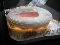 El estadio de Mitjans, con su estructura descarnada parecia estar esperando ser completada. Un estadio Nou sin perder el Camp Nou. Una piel simbólica soportada por la propia estructura existente, que a su vez contiene todos los elementos de modernización, de accesibilidad y de servicios. Sin eliminar la tercera grada, sin afectar la construcción a la ocupación habitual de los socios, en definitiva dando facilidades al cliente.